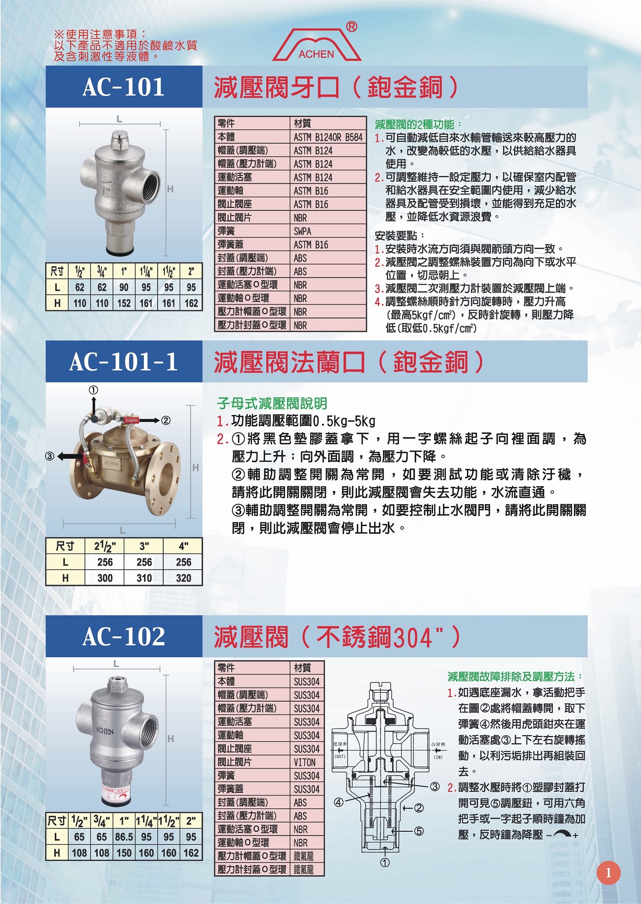 AC-101-1 減壓閥法蘭口 (鉋金銅)