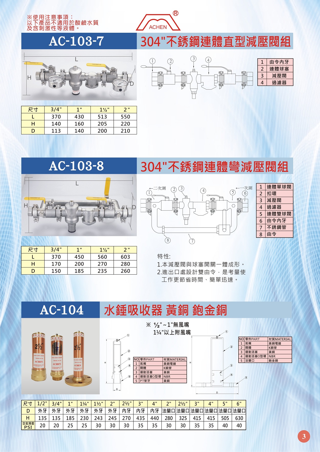 AC-103-3 直通式減壓閥組 (鉋金銅)