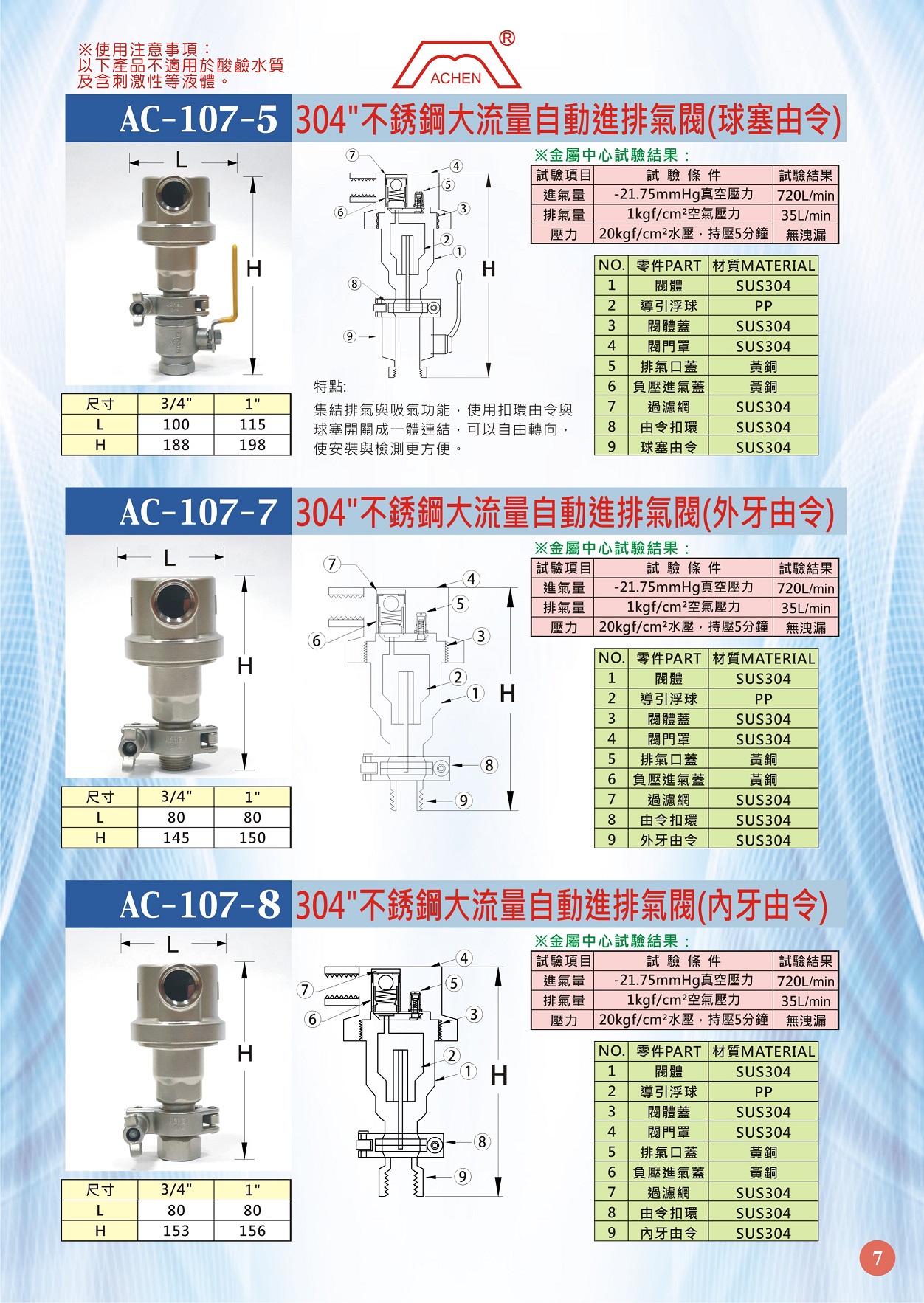 AC-107-7 304"不銹鋼大流量自動進排氣閥(外牙由令)