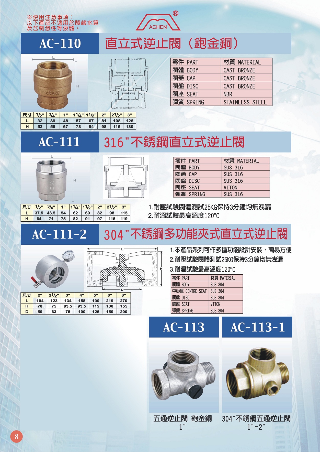 AC-110 直立式逆止閥 (鉋金銅)
