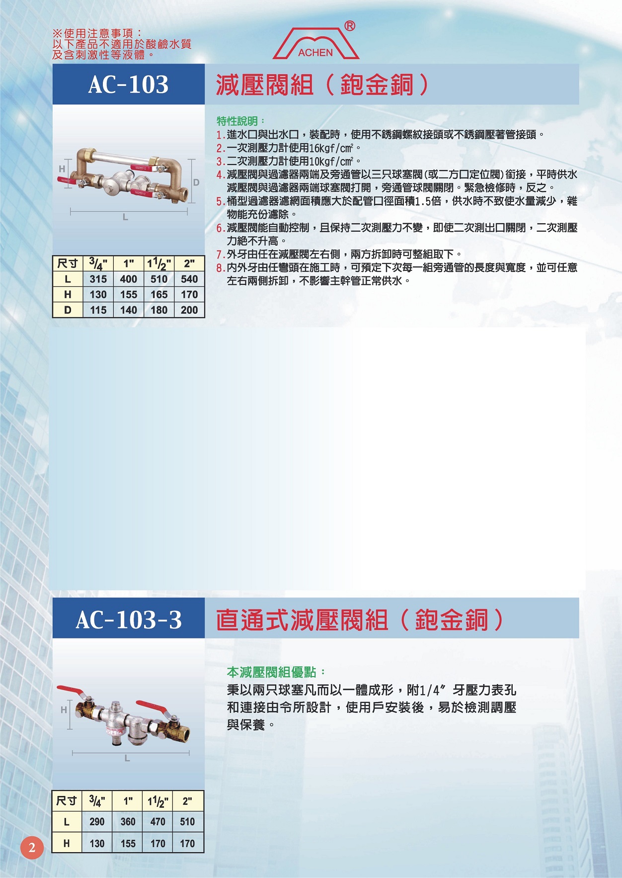 AC-103-3 直通式減壓閥組 (鉋金銅)